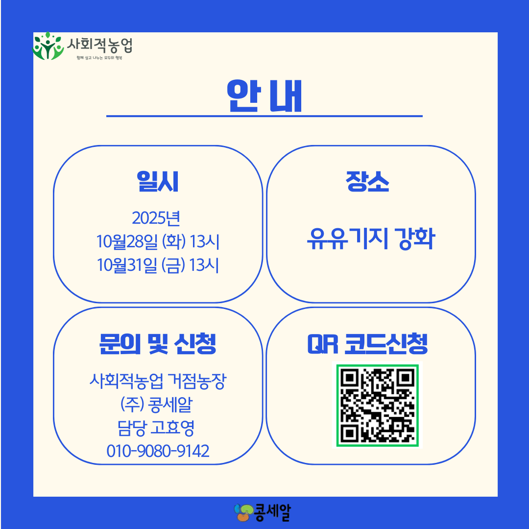 문의: 사회적농업 거점농장 (주) 콩세알 담당 고효영 010-9080-9142