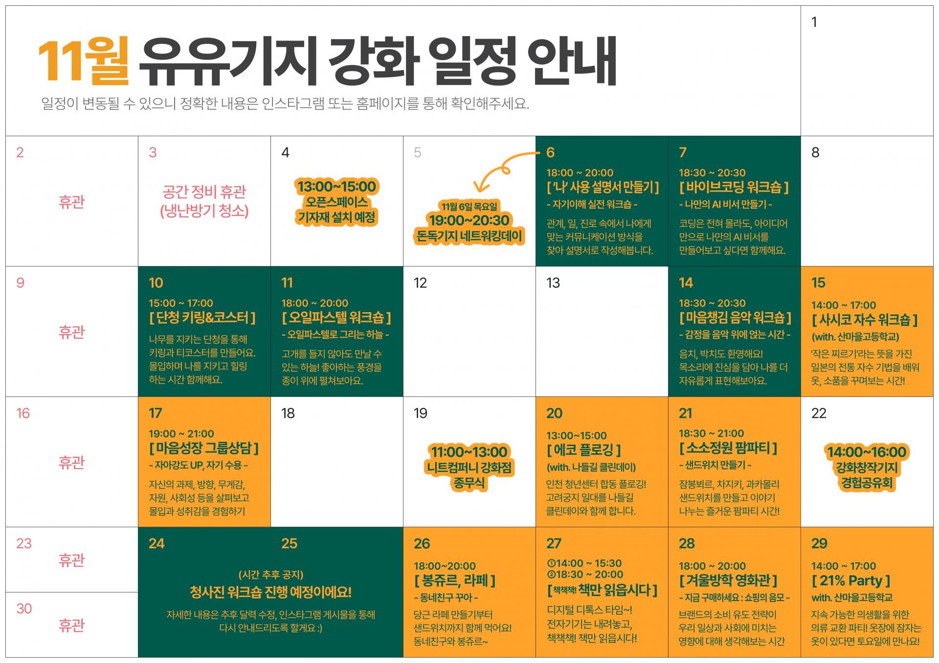 11월 공간 이용에 참고하실 수 있도록 관련 일정과 진행 예정 프로그램을 안내드려요!
