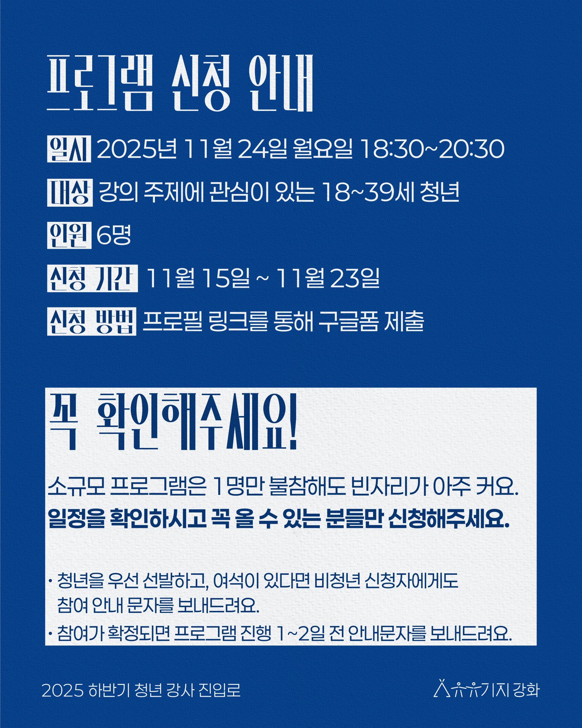 - 일시 : 2025년 11월 24일 월요일 오후 6시 30분~8시30분